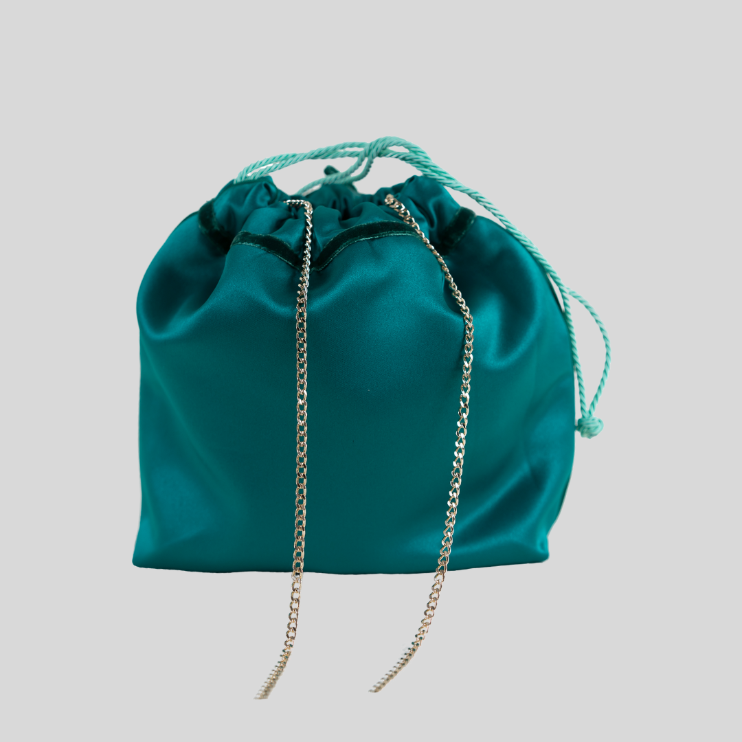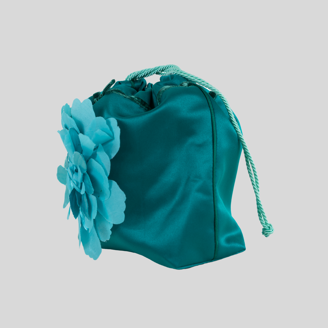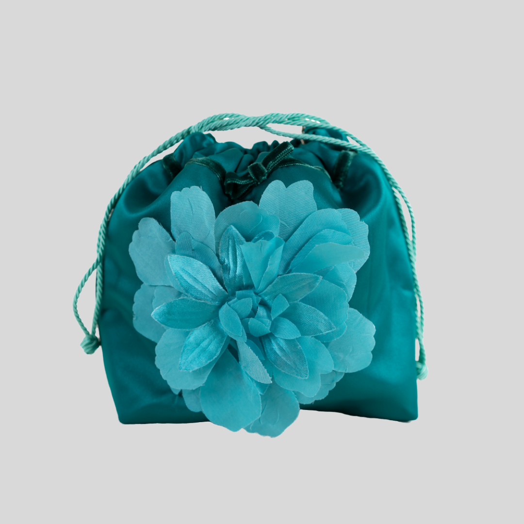 We have paired our love of Duchess Satin with vintage silk flowers to create a unique collection of Prettysacs. Each bag is trimmed in velvet ribbon and colour coordinated piping. Lined in Duchess Satin, this elegant bag can be dressed up or down. Perfect for any occasion.