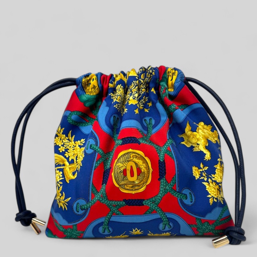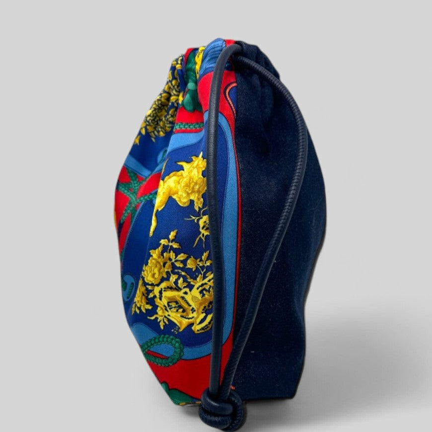 Introducing the Lock and Key, large silk and denim bag – a bold fusion of vintage silk and denim, in our signature drawstring shape. Spacious enough to fit your laptop or iPad, this standout piece also features an inner pocket for easy organisation. Finished with premium nappa leather cords, it's made for those who want style with substance. Perfect for work, travel, or wherever the day takes you, this bag is as practical as it is unforgettable.